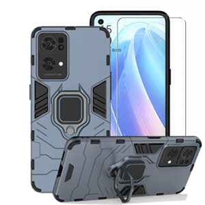 Chengmi ZMONE Phone Case for Oppo Reno 7 Pro 5G with Glass Screen Protector Heavy Duty Dual Layer Military Grade Shockproof Protective Cover Magnetic Ring Kickstand – Blue
