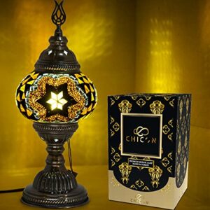 CHICON Handmade Mosaic Turkish Lamp | Genuine Glass Mosaic | A Piece of Art in Unique Lamps | Antique Vintage Lamp | Tiffany Boho Lamp | Moroccan Bohemian Small Table Lamp -Classic Flower Yellow