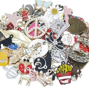 Chenkou Craft Wholesale 50pcs Lots Mix Alloy Resin Rhinestone Flowers Pendants Charms Beads Bracelet Necklace Jewelry Findings-Halloween Christmas Mother Day Valentine Day + 1pc Celar Box