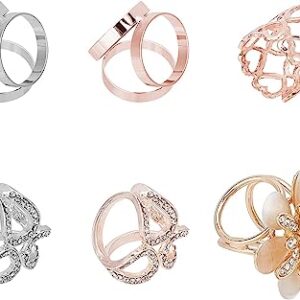 CHGCRAFT 6Pcs 6Styles Fashion Scarf Ring Buckle Flower Fashion Scarf Ring Buckle Modern Simple Triple Slide Jewelry Silk Scarf Clasp Clips Clothing Wrap Holder for Women Lady Girls