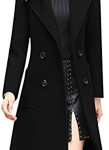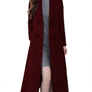 chouyatou Women Chic Shawl Collar Work Double Breasted Maxi Long Wool Pea Coat