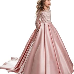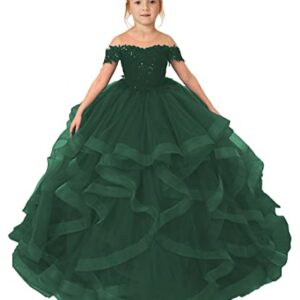 Christmas Flower Girl Dress for Wedding Kids Button Draped Tulle Ball Gowns for Kids