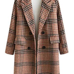 chouyatou Women Classic Notched Collar Double Breasted Plaid Wool Blend Long Trench Coat