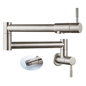 Cinwiny Pot Filler Brushed Nickel Wall Mounted Folding Stretchable Kitchen Restaurant Sink Faucet with Double Joint Swing Arm Single Hole Two Handles Commercial NPT Stainless Steel