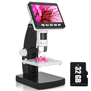 CIMELR LCD Digital Microscope 4.3 inch Coin Microscope 50X-1000X Magnification, USB Microscope with 8 Adjustable LED Lights for Adults Kids – Compatible with Windows/Mac iOS(Included 32GB TF Card)