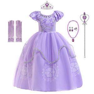 CinheyU Girls Sofia Princess Birthday Dress Rapunzel Halloween Costume Pageant Christmas Evening Party Gown w/Accessories