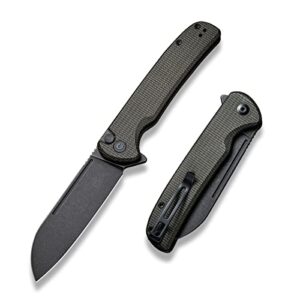 CIVIVI Chevalier Folding Pocket Knife, Button Lock EDC Knife 3.46″ Stonewashed 14C28N Sheepsfoot Blade Micarta Handle, Utility Knife for Hiking Camping Fishing Work Outdoor