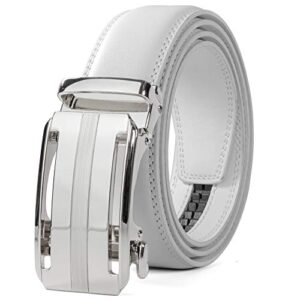 CLUBBELTS Men Leather Ratchet Belt with Automatic Buckle, Black/White/Brown, 1 3/8 Wide, Adjustable Dress Belt for Men