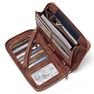 CLUCI Women Wallet Large Leather Designer Zip Around Card Holder Organizer Ladies Travel Clutch Wristlet
