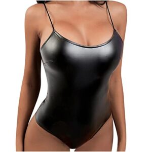 CofeeMO Lingerie for Women Sexy Leather Underwear Plus Size Latex Bodysuit Shapewear One Piece Pajamas for Naughty Sex Play