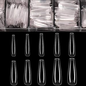 Coffin Nails Long Fake Nails – Clear Acrylic Nails Coffin Shaped Ballerina Nails Tips BTArtbox 500pcs Full Cover False Nail Artificial Nails with Case for Nail Salons and DIY Nail Art, 10 Sizes