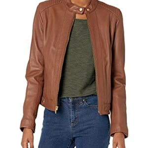 Cole Haan Women Leather Racer Jacket with Quilted Panels