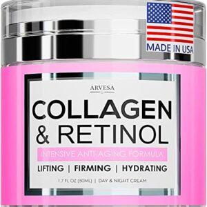 Collagen Cream For Face with Retinol – Anti Aging Face Moisturizer – Day & Night Wrinkle Cream – Hyaluronic Acid & Vitamin A+E – Natural Firming Cream for Women and Men – Hydrating Lotion for Fine Lines – 1.7 oz