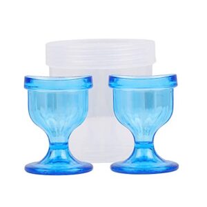 Colored Eye Wash Cups for Effective Eye Cleansing – with Storage Container – Eye Shaped Rim, Snug Fit (2 Pcs.) (Blue)
