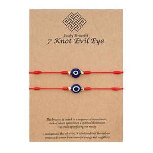 COLORFUL BLING Evil Eye 7 Knot Strand Bracelet with Card, Turkish Eyes Lucky Protection Amulet String Jewelry, Handwoven Adjustable Waterproof Hamsa Hand Fatima Accessory Friendship