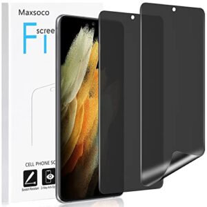 [2 Pack] Galaxy S21 Ultra Privacy Screen Protector Support Fingerprint Sensor Full Adhesive Soft Film, Maxsoco 2-Way Anti Spy Case Friendly Nano Shield [Not Glass] for Samsung Galaxy S21 Ultra (6.8″)