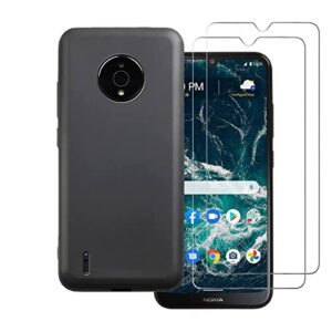 [2-Pack] Tznzxm for Nokia C200 Tempered Glass Screen Protector,Nokia C200 Case, Flexible TPU Scratch Resistant Non-Slip Back Cover Rubber Slim Case for Total Wireless Nokia C200 4G LTE