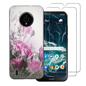 [2-Pack] Tznzxm for Nokia C200 Tempered Glass Screen Protector,Nokia C200 Case, Nokia C200 Phone Case, Rose Painting Design Flexible TPU Non-Slip Back Cover Rubber Slim Case for Nokia C200 N151DL