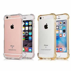 [2Pack] CaseHQ Compatible with iPhone 6 Plus Case, iPhone 6S Plus Case,Crystal Clear Enhanced Grip Protective Defender Cover Soft TPU Shell Shock-Absorption Bumper Air Cushioned 4 Corners Clear+Gold