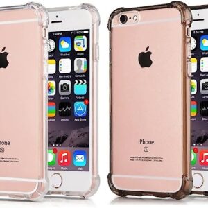 [2Pack] CaseHQ Compatible with iPhone 6 Plus Case, iPhone 6S Plus Case,Crystal Clear Enhanced Grip Protective Defender Cover Soft TPU Shell Shock-Absorption Bumper Air Cushioned 4 Corners-Clear+Black