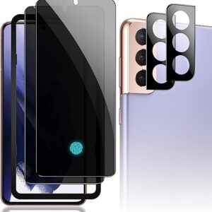 [2+2 Pack] YWXTW for Galaxy S21 Privacy Screen Protector 【Support Fingerprint Unlock】【7H Hardness】and Camera Lens Tempered Glass Protector for Samsung Galaxy S21 6.2-Inch, Anti-Spy Easy Install Frame