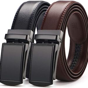 [2 Pack] Men Belt,West Leathers Slide Ratchet Belt for Men with Genuine Leather Perfect Fit Waist Size up to 44 inches