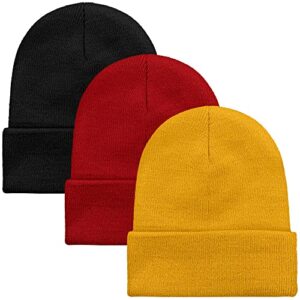 Cooraby 3 Pack Unisex Winter Skull Cap Beanies Knitted Cuff Hats Caps Roll-up Edge Beanie Hats for Men Women Outdoors