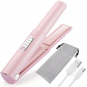 Cordless Hair Straightener (New Version), Mini Flat Iron Hair Straightener 2 in 1, with USB-C Rechargeable 4800mAh Battery, Ceramic Plate, Adjustable Temperature, Dual Voltage, Travel Size