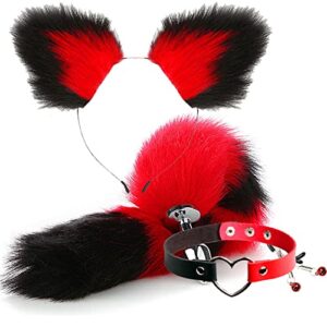 Costume Accessory Set for Women Handmade Ears Plush Tail Neck Collar Set Cosplay Costume Party Cute Dress Up Accessories