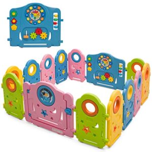 Costzon Baby Play Yards – 14 Panel Portable Thicken Baby Playpen Indoor Outdoor Colorful Rocket Baby Fence with Game Panel, Safety Lock, Non-Slip Bases, Adjustable Shape (Rocket 14- Panel)