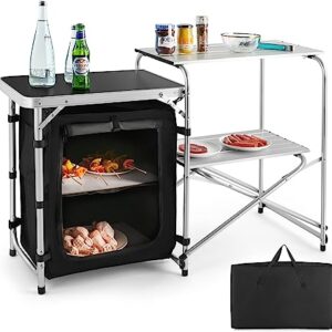 COSVALVE Camping Kitchen Table, Aluminum Outdoor Folding Grill Cook Station with Storage Organizer, 2 Side Tables for BBQ Picnic Fishing Party Camping Supplies and Accessories, Free Installation