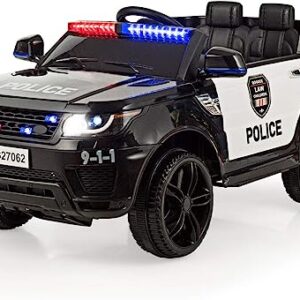 Costzon Ride on Car, 12V Battery Powered Police SUV Vehicle w/ Remote Control, Siren Flashing Light, Horn Music, Intercom, Spring Suspension, 3 Speeds, USB, 4 Wheeler Truck, Kids Cars to Drive, Black
