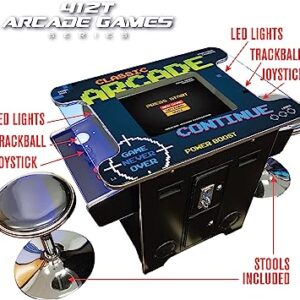 Creative Arcades Full Size Commercial Grade Cocktail Arcade Machine | 2 Player | 412 Games | 22″ LCD Screen | Square Glass Top | LED | 2 Sanwa Joysticks | Trackball | 2 Stools | 3 Year Warranty