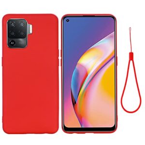 Cute Silicone Phone Case for Oppo A94/F19 Pro Red Bumper Rubber Soft Gel Matte Protective Cover Girl Shockproof Case Waterproof Anti-Dirty Women Lanyard Cellphone Protector for Oppo Reno 5 Lite