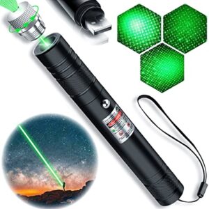 Cyahvtl Green Laser Pointer, 2000 Metres Long Range High Power Flashlight, Rechargeable Pointer for USB, with Star Cap Adjustable Focus Suitable for Projecto
