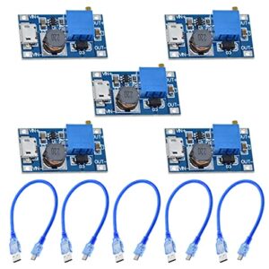 DAOKI 5 Pcs DC-DC Boost Converter MT3608 2V-24V to 5V-28V 2A Adjustable Micro USB Voltage Regulator Step Up Power Supply Module for Arduino with 5 Pcs Micro USB Cable