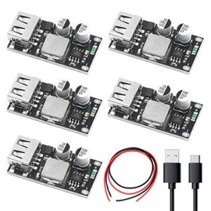 DAOKI 5PCS DC-DC USB Buck Converter Step-Down Module 6-32V 12V 24V to 5V QC 3.0 Charging Module Voltage Regulator Power Supply Module with 24AWG Wire, USB Type C Cable
