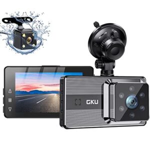 Dash Cam Front and Rear, GKU Dash Cam 1920X1080P FHD Dual Car Camera 170° Wide Angle Backup Dash Camera for Cars,Super Night Vision Car Dash Cam with Parking Mode,Motion Detection,Loop Recording