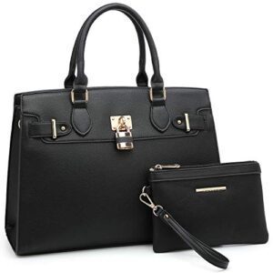 Dasein Women Handbags Fashion Satchel Purses Top Handle Tote Work Bags Shoulder Bags with Matching Clutch 2pcs Set