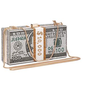Dasein Women Stack of Cash Dollars Clutch Party Purse Crystal Evening Bag Cocktail Prom Handbag w/Rhinestones