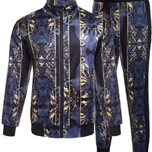 Daupanzees Mens Long Sleeve Fashion Luxury Design Print 2 Piece Outfits