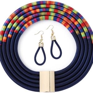 deladola Boho Tribal Layered Choker Necklace Earrings Set Red Rope Weave Collar Statement African Chunky Multilayer Necklace Jewelry Accessories for Women and Girls