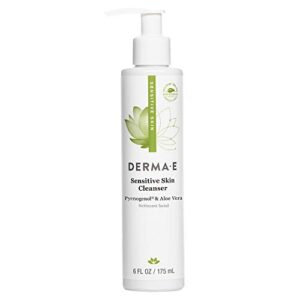 DERMA E Sensitive Skin Cleanser – Gentle, Unscented Cleansing Face Wash – Soothing Facial Cleanser with Pycnogenol and Aloe Vera – Reduces Redness and Irritation, 6 fl oz