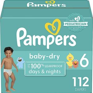 Diapers Size 6, 112 Count – Pampers Baby Dry Disposable Baby Diapers, Enormous Pack, Packaging & Prints May Vary