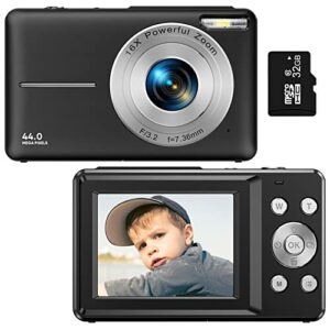 Digital Camera, Kids Camera with 32GB Card FHD 1080P 44MP Vlogging Camera with LCD Screen 16X Zoom Compact Portable Mini Rechargeable Camera Gifts for Students Teens Adults Girls Boys-Black