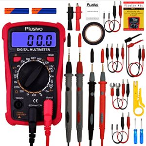 Digital Multimeter AC DC Voltmeter Ohm Volt Amp Tester Continuity, Battery and Diode Multi Tester with Set of Test Leads, Probes, Test Clips, Dupont Wires, Crocodile Clips, Wire Stripper from Plusivo
