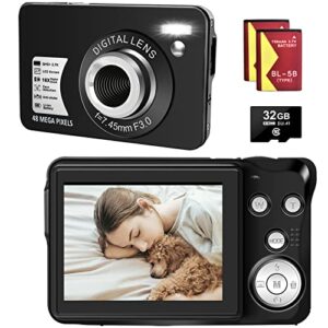 Digital Cameras – HD Compact Camera 48MP 2.7K Small Portable Camera for Teens with 16X Digital Zoom Mini Camera with 32 GB SD Card and 2 Batteries (Black)