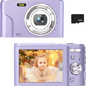 Digital Camera for Kids Boys and Girls – 36MP Children Camera with 32GB SD Card,Full HD 1080P Rechargeable Electronic Mini Camera for Students, Teens, Kids(Purple)