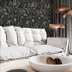 Dimoon 78.7″x16.1″ Delicate Floral Peel and Stick Wallpaper Black Golden Thicken Waterproof Leaf Vintage Flower Contact Paper Self Adhesive Wallpaper Removable Wall Paper Shelf Liner Decal Vinyl Roll