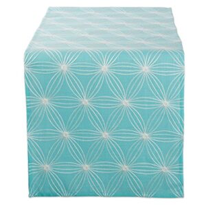 DII Polyester Embroidered Table Runner for Spring Garden Party, Summer BBQ, Baby Showers and Everyday Use – 14×70, Flowers on Aqua Base